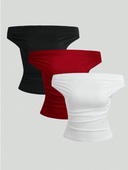 Top ajustado de un hombro con drapeado y color liso, de estilo minimalista informal.